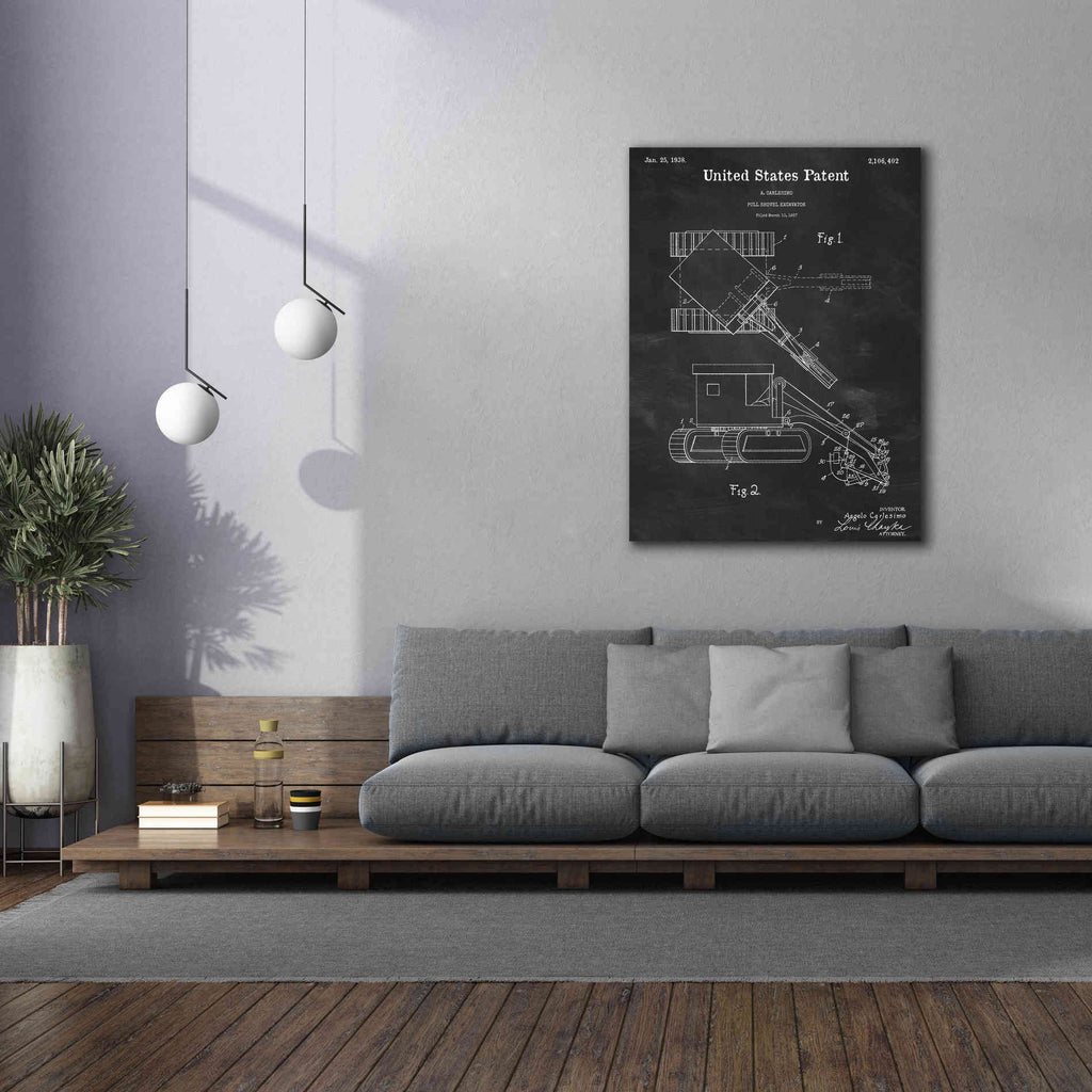 'Pull Shovel Excavator Blueprint Patent Chalkboard,' Canvas Wall Art