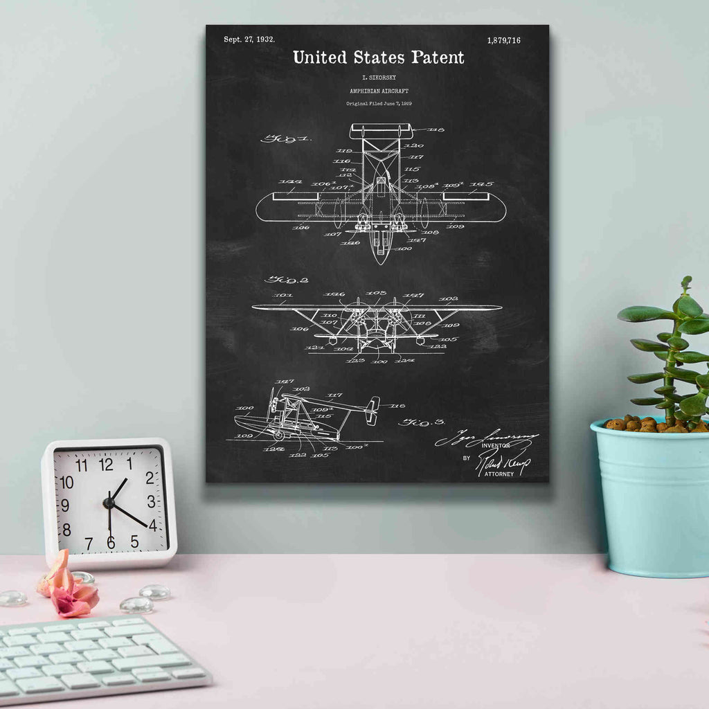 'Amphibian Aircraft Blueprint Patent Chalkboard,' Canvas Wall Art